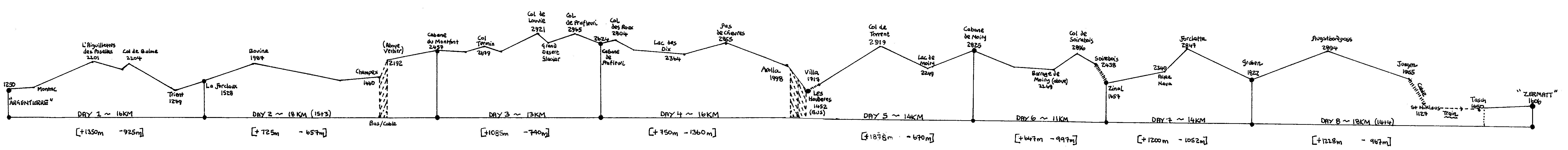 - Day 8 : From Gruben via Augstbordpass (2894m) and Jungu (1975m) to St Nicklaus (1127m), and from Tasch (1450m) to Zermatt (1620m)
